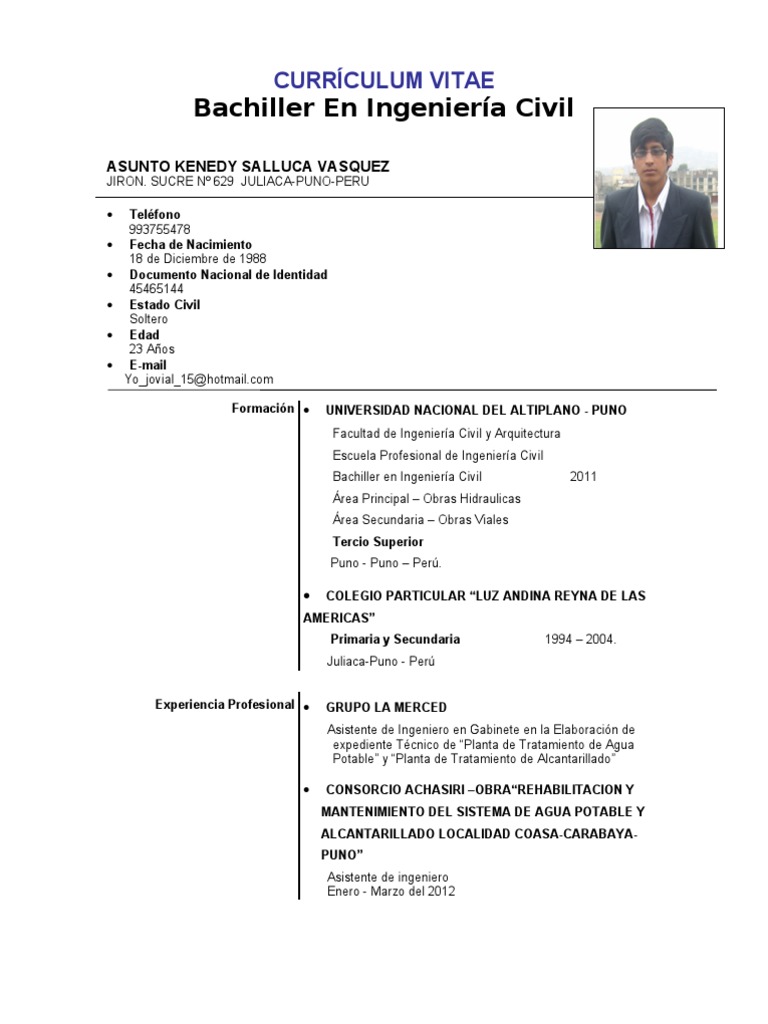 Ejemplo de aunt vitae en peru closer resume side modelo ejemplos explanation vitae documentado en peru peru free ash. 0 0 voto positivo 0 0 votos negativos. Is the modelo de curriculum vitae peru sin experiencia online writing service that offers custom written papers, including research papers, thesis papers, modelo de curriculum vitae peru sin experiencia essays and others. Arequipa, 05 de enero 1980 estado civil: Datos personales nombre su nombre completo documento de identidad xx'xxx.xxx de xxxxxx fecha de nacimiento (dÃa) de (mes) de (año completo xxxx) lugar de nacimiento lugar, departamento, paÃs (si es necesario) estado civil soltero, casado, viudo, etc.
