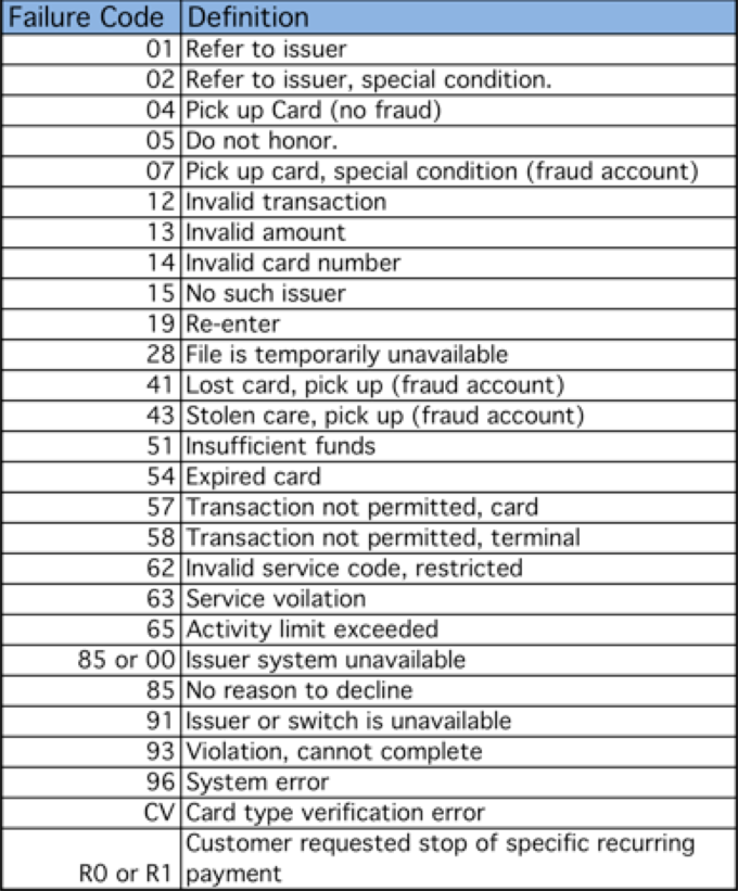 Credit Card Decline Codes Everything You Wanted To Know from securionpay.com Reasons why a credit card is declined. Maybe you would like to learn more about one of these? We did not find results for: Check spelling or type a new query.